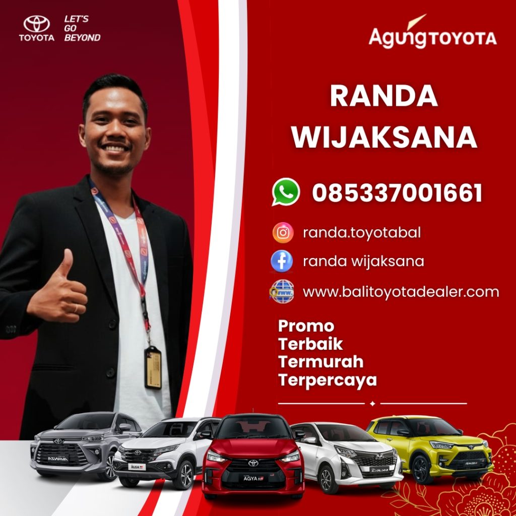 Selamat datang di website resmi sales agung toyota di bali. Dengan sales yang berpengalaman sejak 2011, kami berkomitmen untuk selalu memberikan pelayanan terbaik. Silahkan tanya2 by chat (wa) di link dibawah ataupun ajukan test drive sekarang. Kami dengan senang hati bisa melayani untuk pengalaman Toyota anda..
